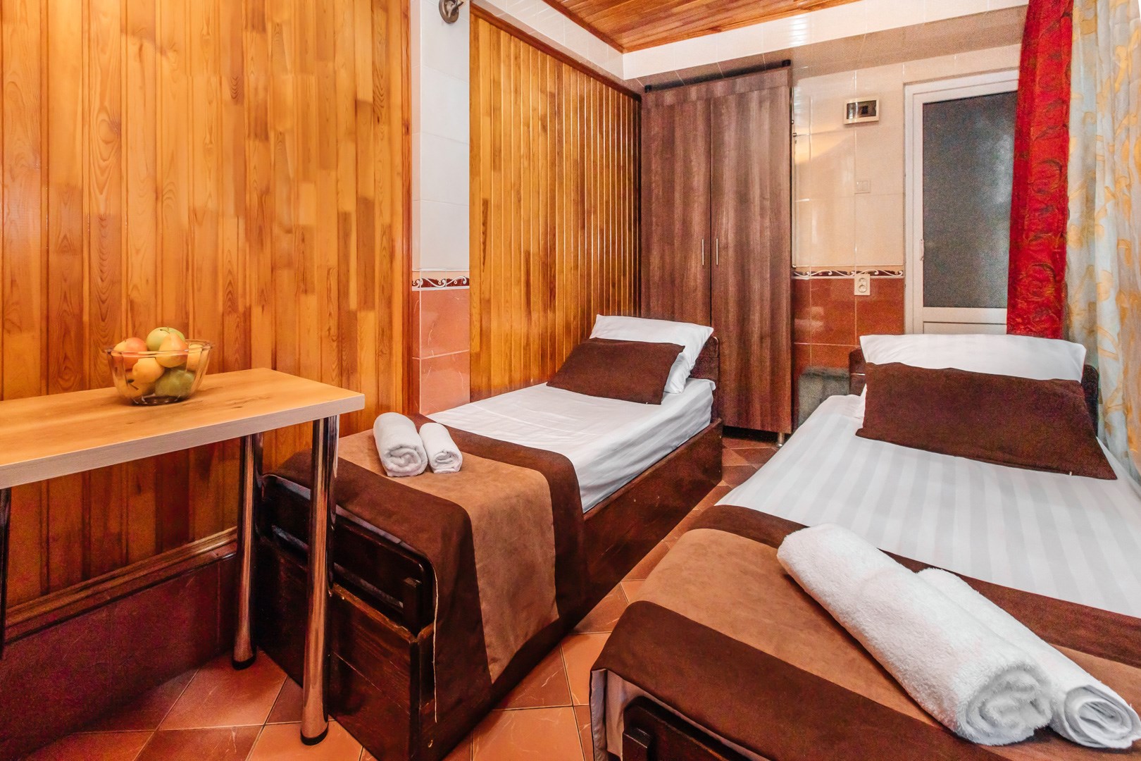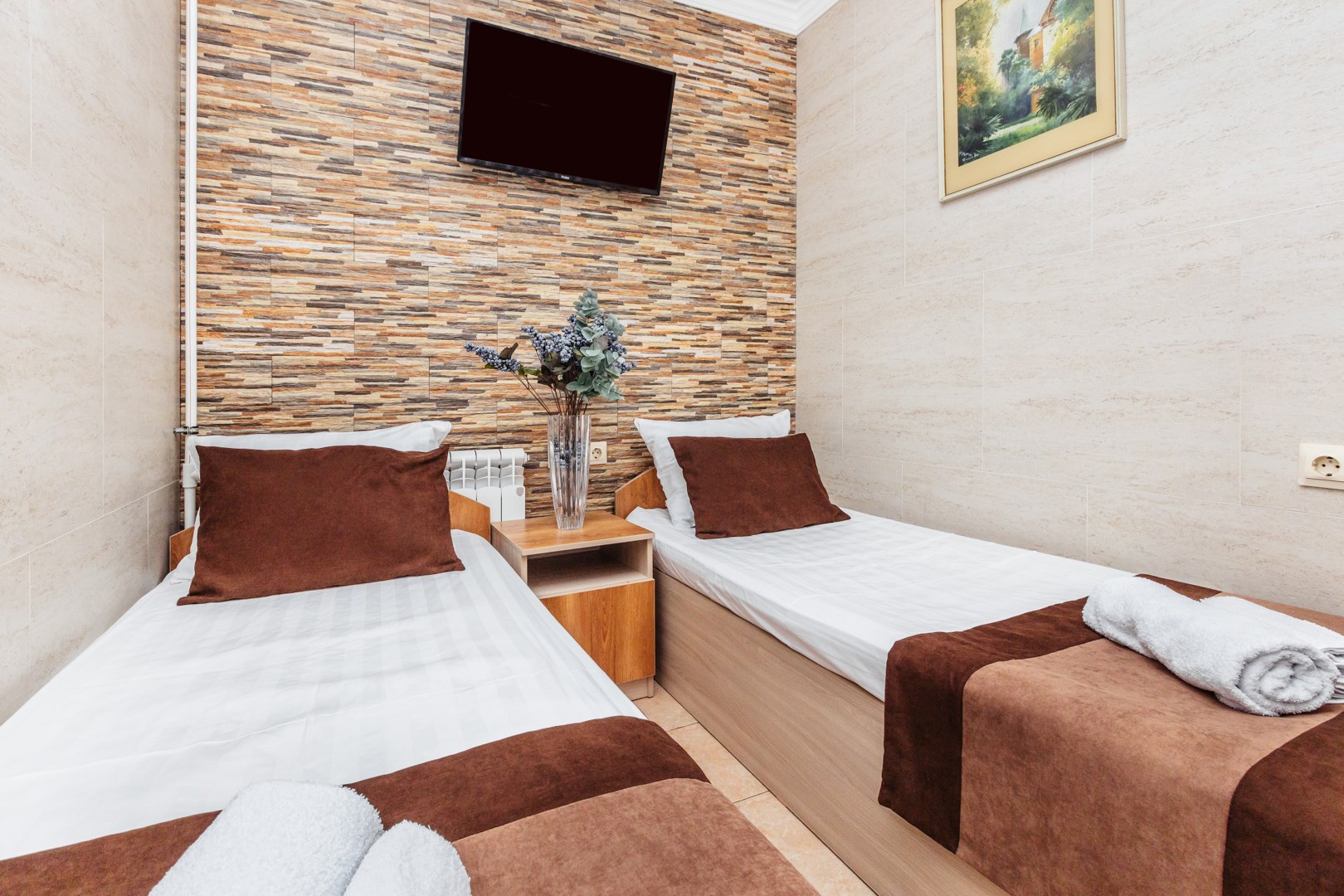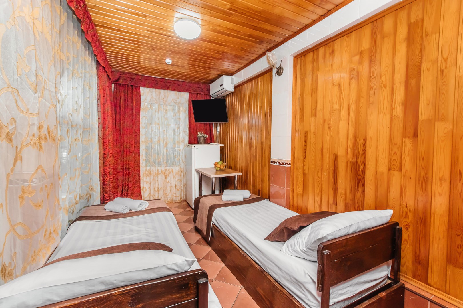 | Стандарт Стандарт 2-местный twin | 12 кв.м. | 2 чел. | Мебель (вешалка, зеркало, кровати односпальные, прикроватная тумбочка, стол, стул, шкаф), Оборудован... | |